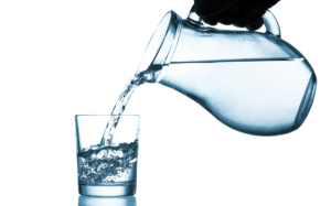 Pour water from a pitcher into a glass